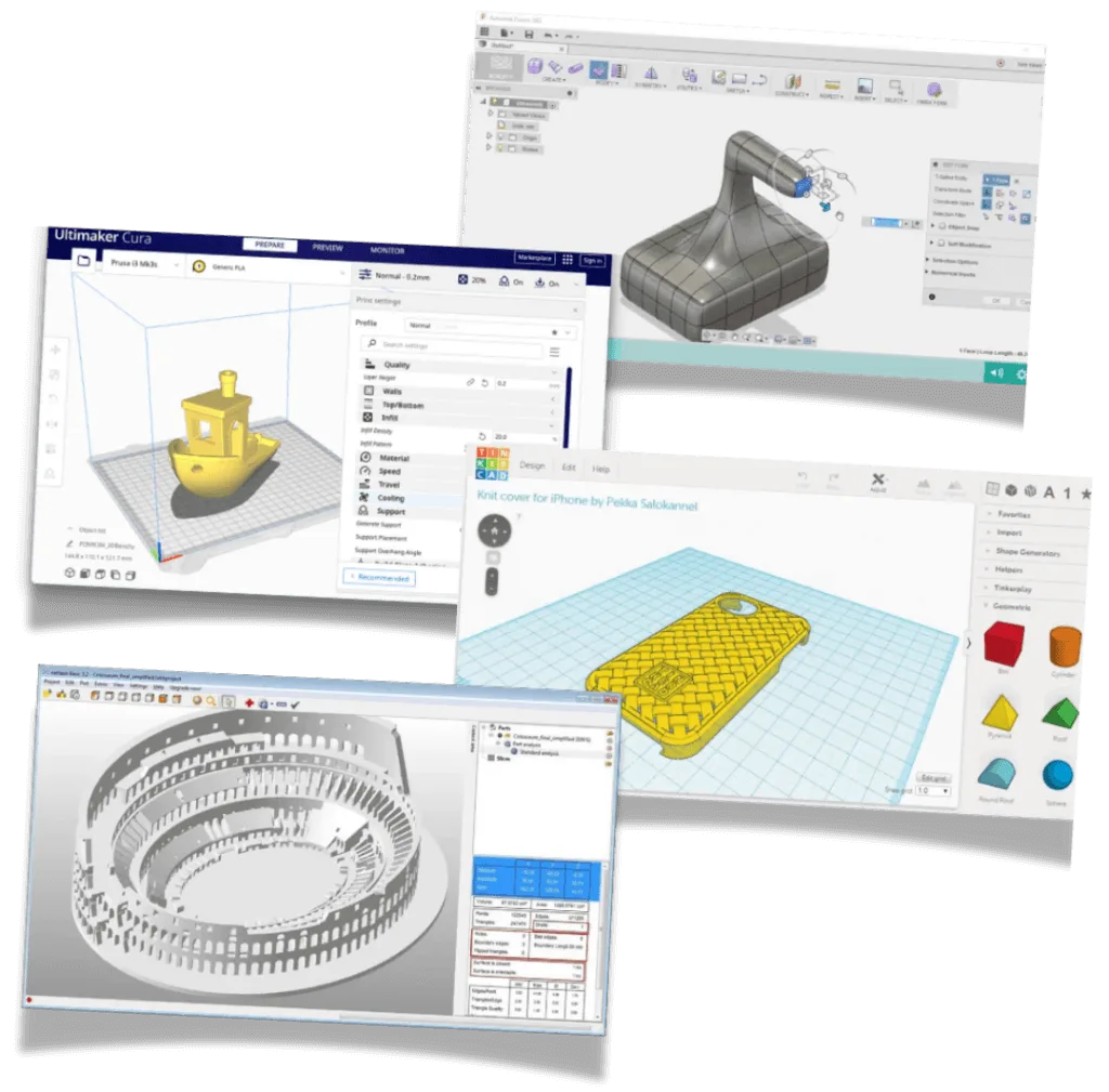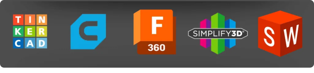 Nuestros archivos STL funcionan perfectamente con favoritos de la industria como Cura, Fusion 360, Tinkercad, Simplify3D y SolidWorks.