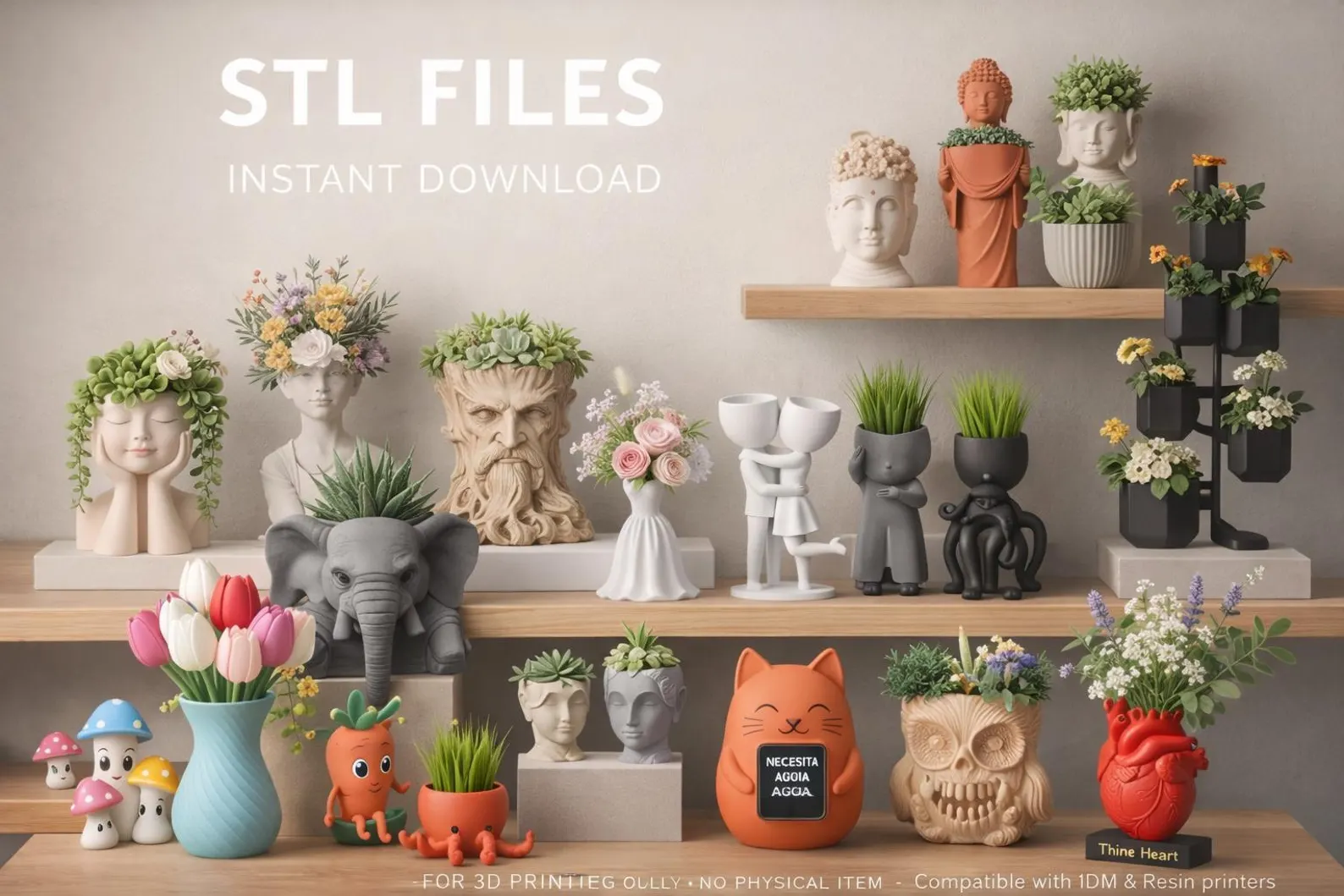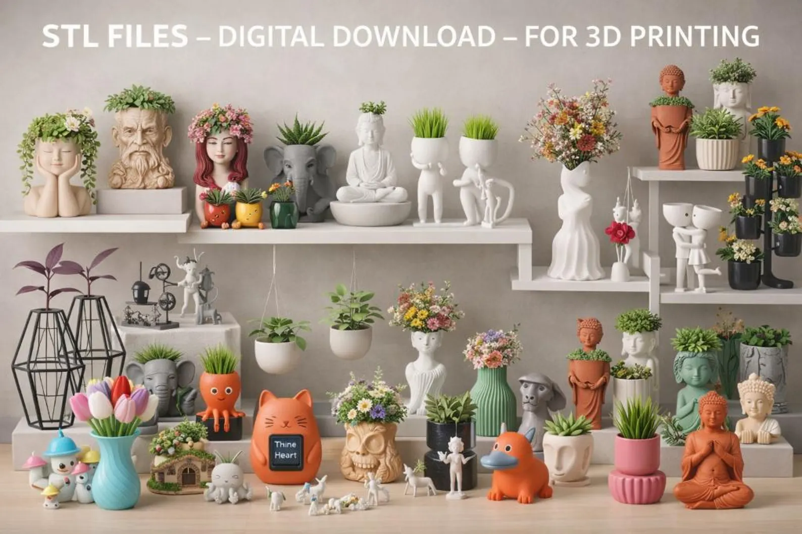 🔥5000+ STL Planter Bundle for 3D Printing | Face Planters, Cute Flower Pots, Modern Vases | Commercial Use STL Files | Instant Download