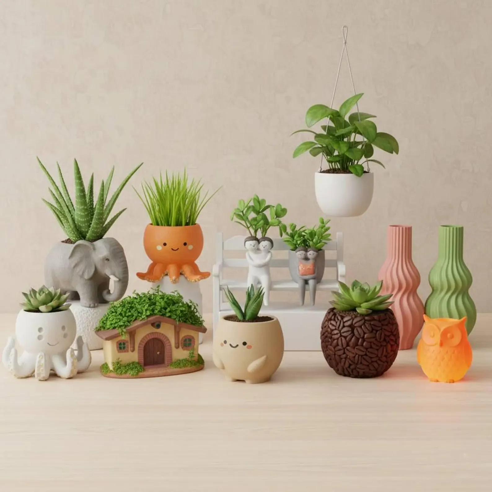 🏡 Tabletop planters and decorative pieces