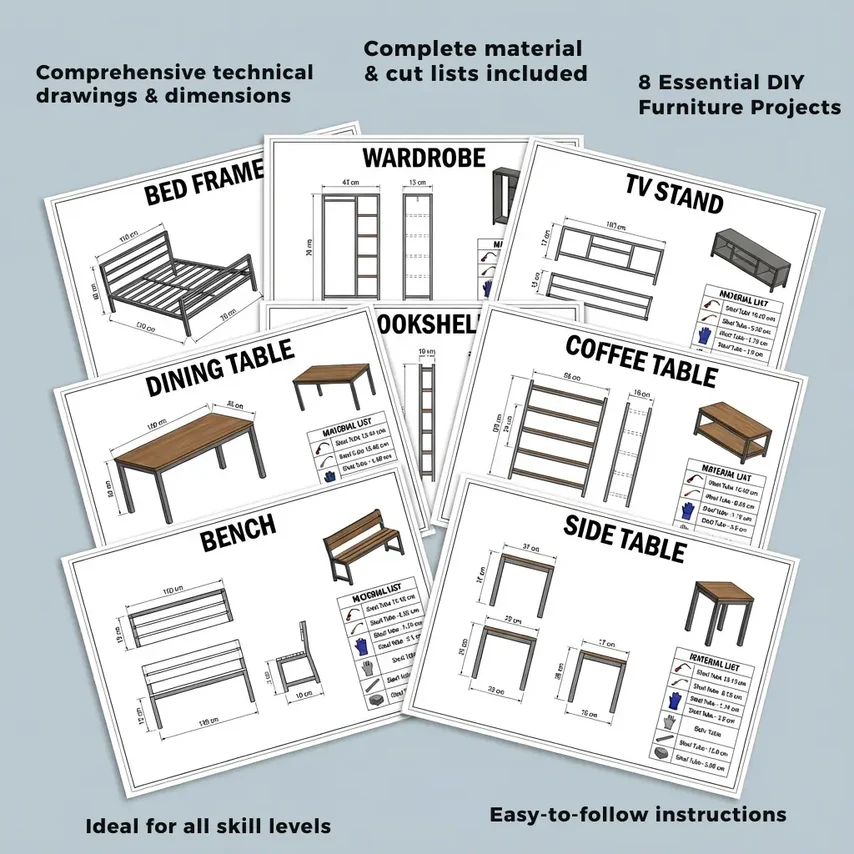 🔨 600+ Ready-to-Build Projects 📏 Clear, Precise, and Easy-to-Follow Measurements 🛠️ Accurate Steel Profiles and Cut Lists 💪 Strong, Reliable, and Practical Designs 👀 Beginner-Friendly Visual Guides 📝 Complete Materials and Hardware Lists 🏠 Perfect for DIYers, Fabricators, and Small Shops ⚡ Instant Digital Access — Start Building Right Away
