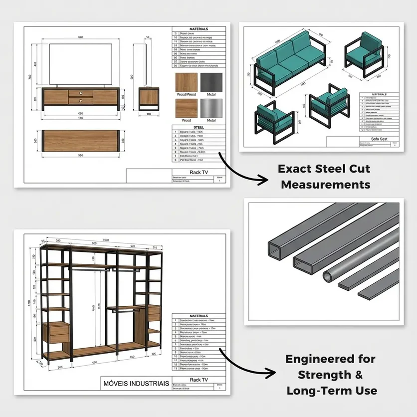 You’ll work with properly sized steel profiles and proven structures that help you build furniture that feels solid, professional, and built to last.